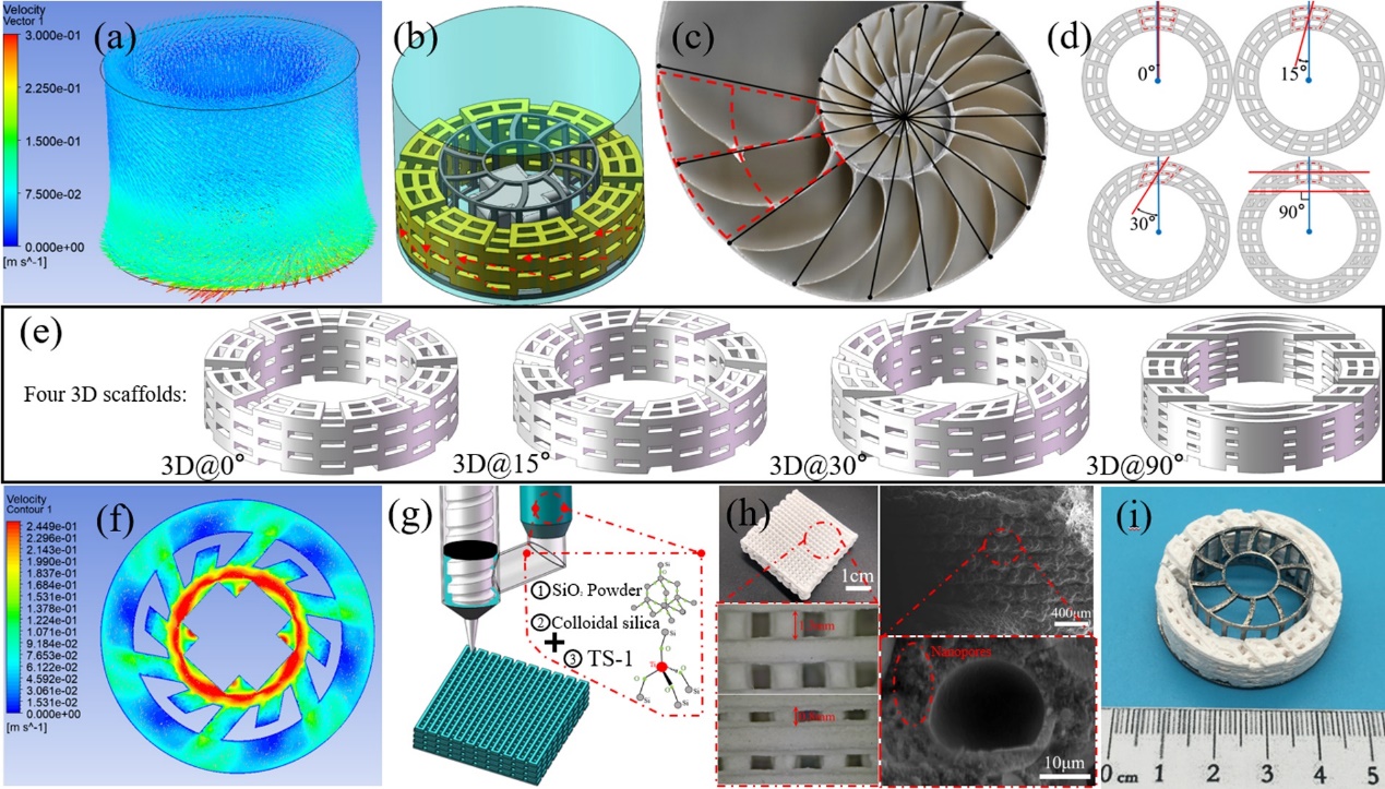 图1.具有仿生螺旋结构的3D打印整体式TS-1催化剂的设计方法与制备工艺流程